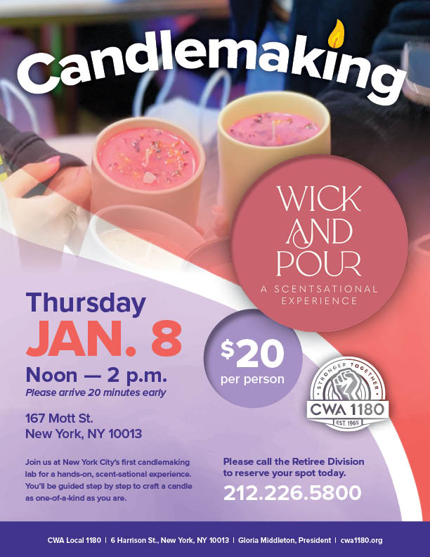 | Tues. 1/6 | IN-PERSON Review of Online Lessons / Q&A | 6 Harrison St. Call the Retiree Division to reserve your spot today: 212.226.5800 |